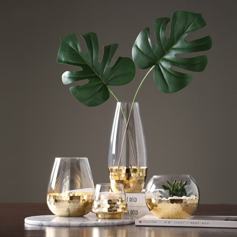 Modern Minimalist Luxury Glass Vase with Gold Accent for Modern Home Decoration